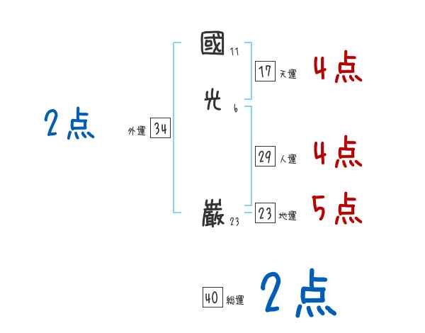 國光巌さんの画数の鑑定結果