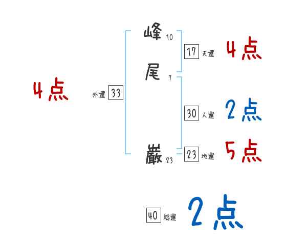 峰尾巌さんの画数の鑑定結果