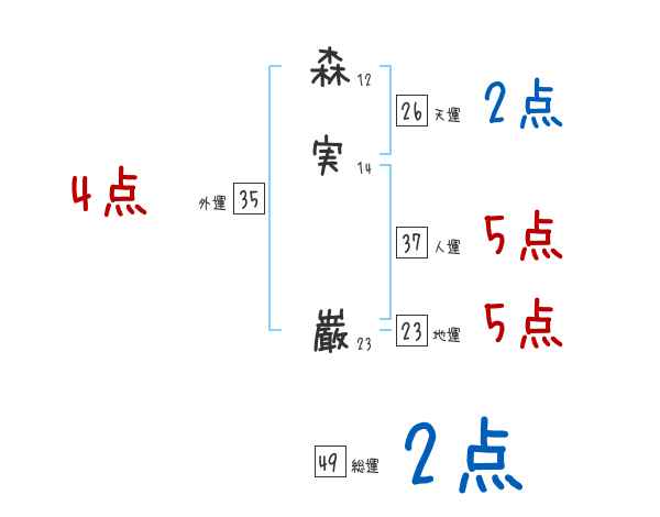 森実巌さんの画数の鑑定結果