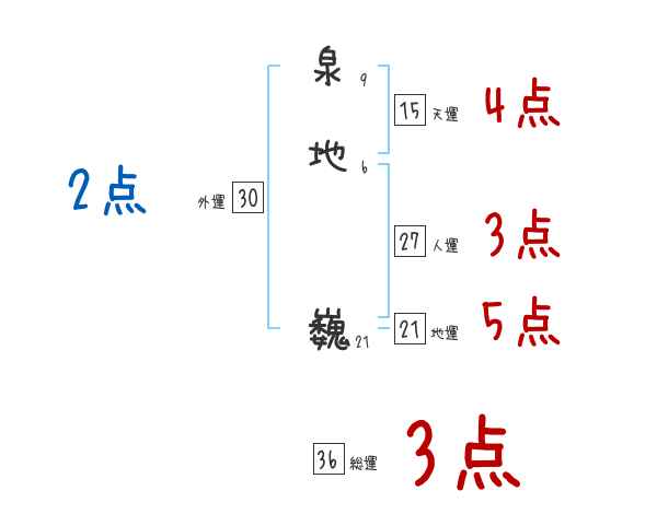 泉地巍さんの画数の鑑定結果