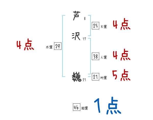 芦沢巍さんの画数の鑑定結果
