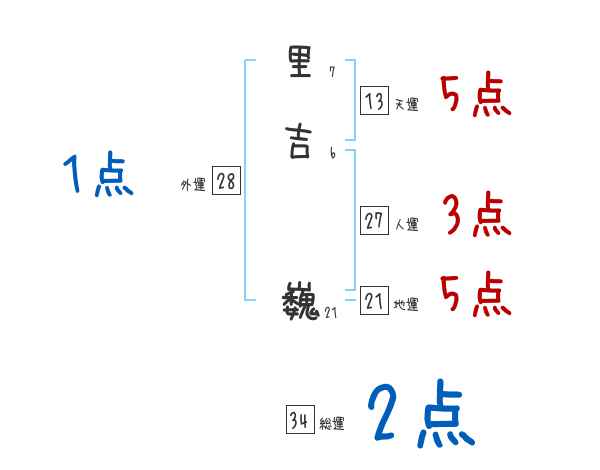 里吉巍さんの画数の鑑定結果