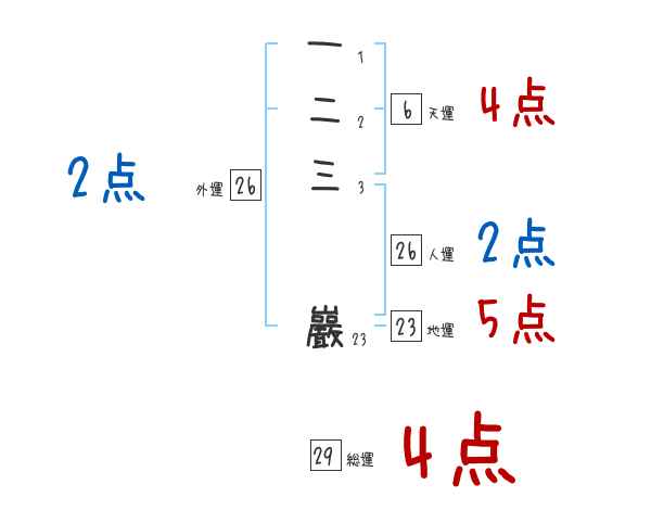 一二三巖さんの画数の鑑定結果