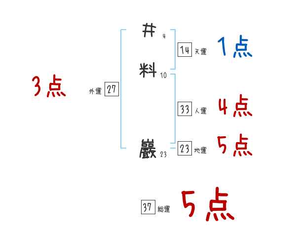 総運![]() | 井料巖さんの総運は37画の5つ星!努力家で順応性に優れる。現実的な考え方ができ忠実に物事をこなす。 あなたの人生を表す1番重要な運勢です。生涯を通じて影響する総合運となり、主に50歳以降の晩年期に影響を及ぼします。 |