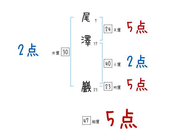 尾澤巖さんの画数の鑑定結果