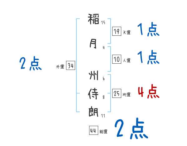 稲月州侍朗さんの画数の鑑定結果