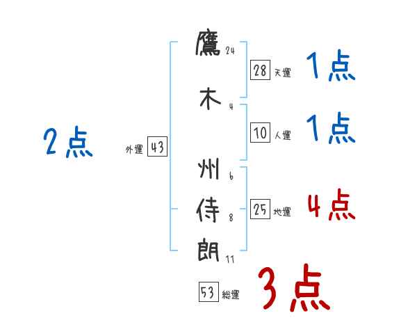 鷹木州侍朗さんの画数の鑑定結果