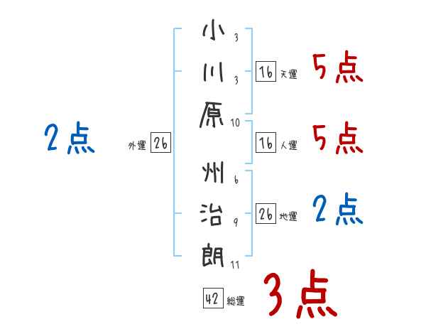 小川原州治朗さんの画数の鑑定結果