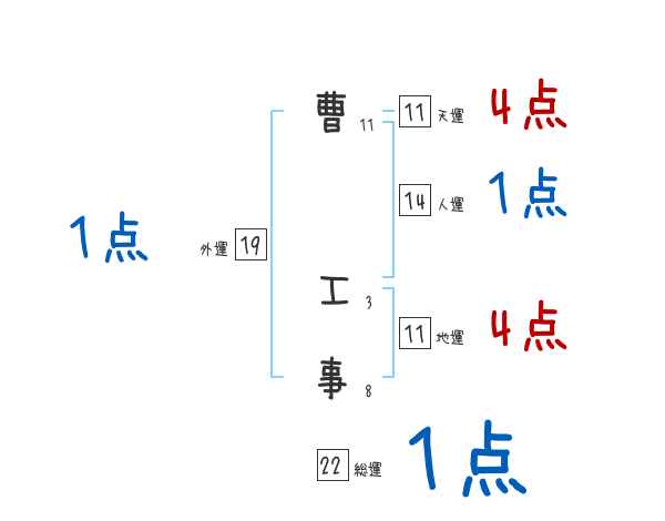 曹工事さんの画数の鑑定結果