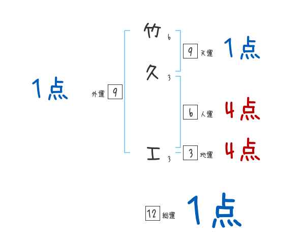 天運![]() | 竹久工さんの天運は9画の1つ星!消極的で才能を発揮することが苦手なことも。周りの意見に耳を傾けましょう。 家系が持つ宿命的な運勢を表します。祖先から受け継いだ苗字ですので自分の力が及びません。家柄を象徴します。 |
