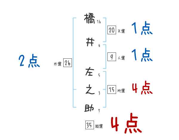 橋井左之助さんの画数の鑑定結果