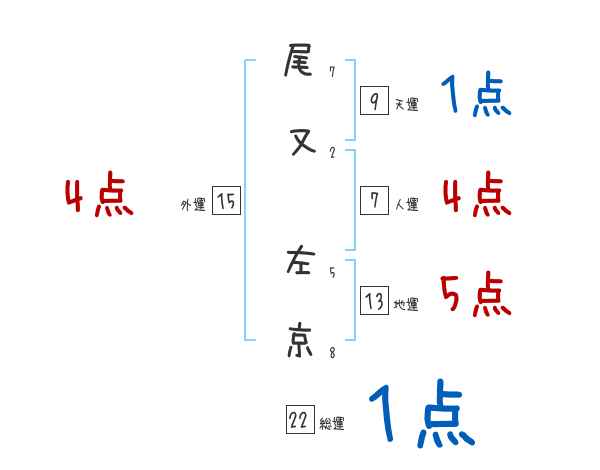 尾又左京さんの画数の鑑定結果