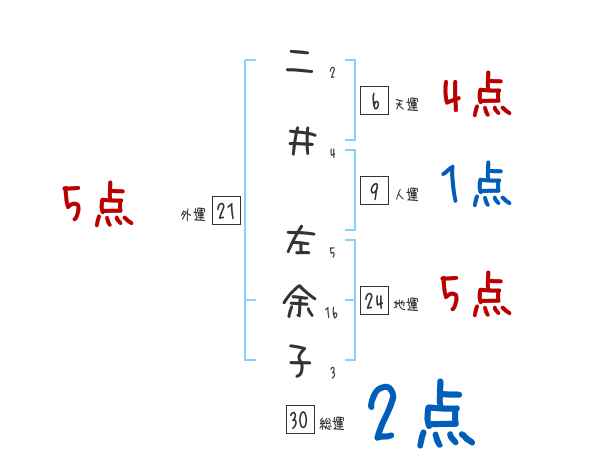 二井左余子さんの画数の鑑定結果