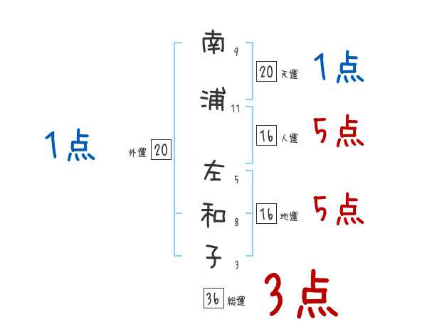 南浦左和子さんの画数の鑑定結果