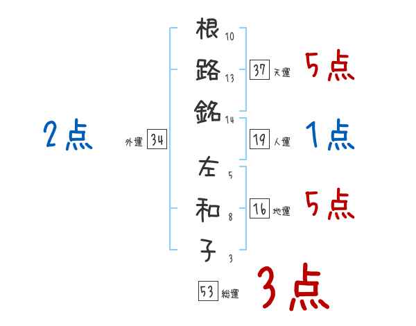 根路銘左和子さんの画数の鑑定結果
