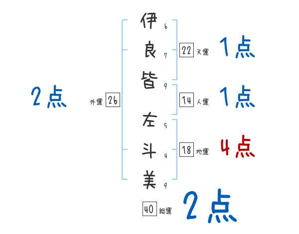 伊良皆左斗美さんの画数の鑑定結果