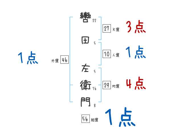 外運![]() | 轡田左衛門さんの外運は46画の1つ星!迷走することが多く苦労するかも。目先のことにとらわれないように。 生活面を象徴する運勢です。外部から受ける影響力を表し、結婚運、家庭運や職場、環境への順応性を表します。 |