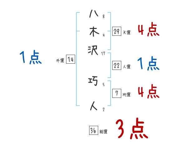 八木沢巧人さんの画数の鑑定結果