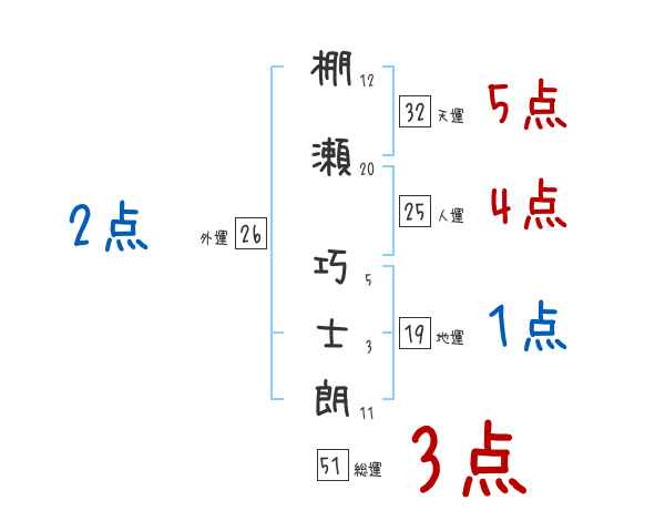 天運![]() | 棚瀬巧士朗さんの天運は32画の5つ星!柔軟性があり成功する。チャンスが多く金運が良い。 家系が持つ宿命的な運勢を表します。祖先から受け継いだ苗字ですので自分の力が及びません。家柄を象徴します。 |