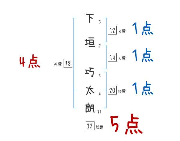 総運![]() | 下垣巧太朗さんの総運は32画の5つ星!柔軟性があり成功する。チャンスが多く金運が良い。 あなたの人生を表す1番重要な運勢です。生涯を通じて影響する総合運となり、主に50歳以降の晩年期に影響を及ぼします。 |