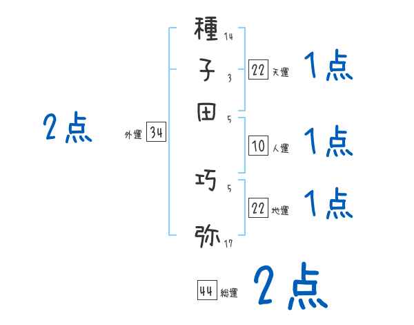 種子田巧弥さんの画数の鑑定結果