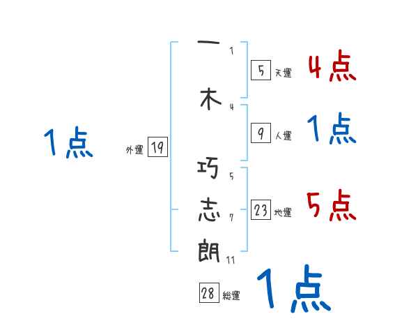 総運![]() | 一木巧志朗さんの総運は28画の1つ星!家庭環境に注意。スポーツで活躍できる能力があるかも。 あなたの人生を表す1番重要な運勢です。生涯を通じて影響する総合運となり、主に50歳以降の晩年期に影響を及ぼします。 |