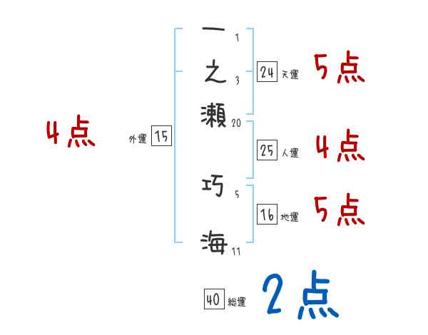 一之瀬巧海さんの画数の鑑定結果