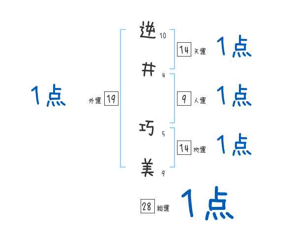 天運![]() | 逆井巧美さんの天運は14画の1つ星!人に対して優しいがストレスを溜め込みがち。人間関係のトラブルを避けるよう気をつけましょう。 家系が持つ宿命的な運勢を表します。祖先から受け継いだ苗字ですので自分の力が及びません。家柄を象徴します。 |