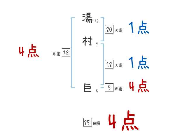 湯村巨さんの画数の鑑定結果
