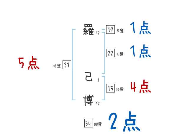 外運![]() | 羅己博さんの外運は31画の5つ星!社交性があり判断力に優れる。順風満帆な人生で円満な生活。 生活面を象徴する運勢です。外部から受ける影響力を表し、結婚運、家庭運や職場、環境への順応性を表します。 |