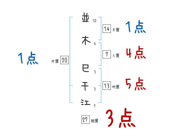 総運![]() | 並木巳千江さんの総運は27画の3つ星!頭脳明晰だが強情で摩擦が多い傾向。孤立に注意。 あなたの人生を表す1番重要な運勢です。生涯を通じて影響する総合運となり、主に50歳以降の晩年期に影響を及ぼします。 |