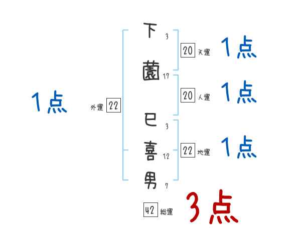 下薗巳喜男さんの画数の鑑定結果