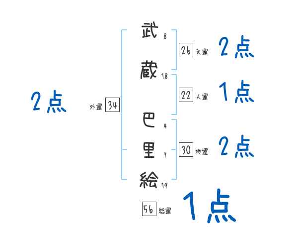 武蔵巴里絵さんの画数の鑑定結果