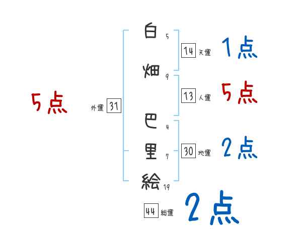 白畑巴里絵さんの画数の鑑定結果