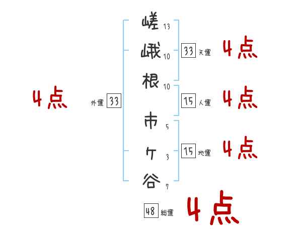 嵯峨根市ヶ谷さんの画数の鑑定結果