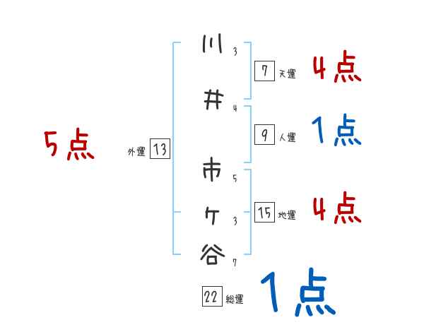 総運![]() | 川井市ヶ谷さんの総運は22画の1つ星!努力することが苦手ないっぽう手先が器用。芸術性にも優れる。 あなたの人生を表す1番重要な運勢です。生涯を通じて影響する総合運となり、主に50歳以降の晩年期に影響を及ぼします。 |