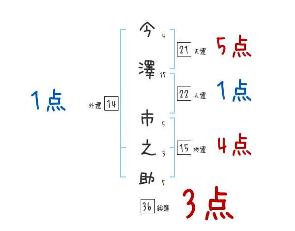 今澤市之助さんの画数の鑑定結果
