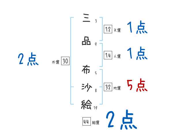 外運![]() | 三品布沙絵さんの外運は30画の2つ星!浮き沈みの激しさに注意しましょう。 生活面を象徴する運勢です。外部から受ける影響力を表し、結婚運、家庭運や職場、環境への順応性を表します。 |