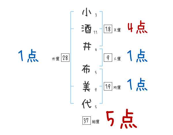 小酒井布美代さんの画数の鑑定結果
