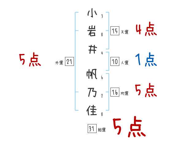 外運![]() | 小岩井帆乃佳さんの外運は21画の5つ星!統率力がある。独立し成功する。名誉を手に入れる。 生活面を象徴する運勢です。外部から受ける影響力を表し、結婚運、家庭運や職場、環境への順応性を表します。 |
