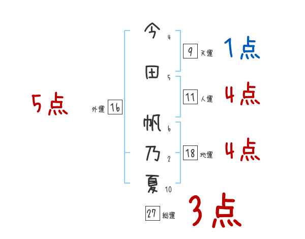 今田帆乃夏さんの画数の鑑定結果