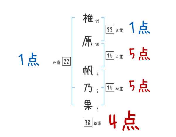 椎原帆乃果さんの画数の鑑定結果