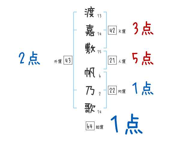 渡嘉敷帆乃歌さんの画数の鑑定結果