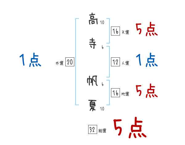 総運![]() | 高寺帆夏さんの総運は32画の5つ星!柔軟性があり成功する。チャンスが多く金運が良い。 あなたの人生を表す1番重要な運勢です。生涯を通じて影響する総合運となり、主に50歳以降の晩年期に影響を及ぼします。 |
