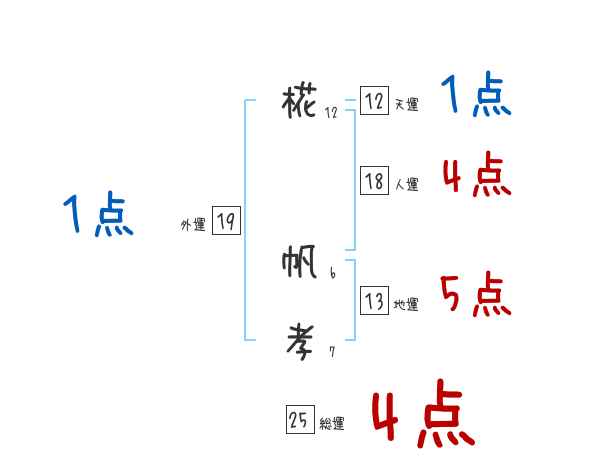 椛帆孝さんの画数の鑑定結果