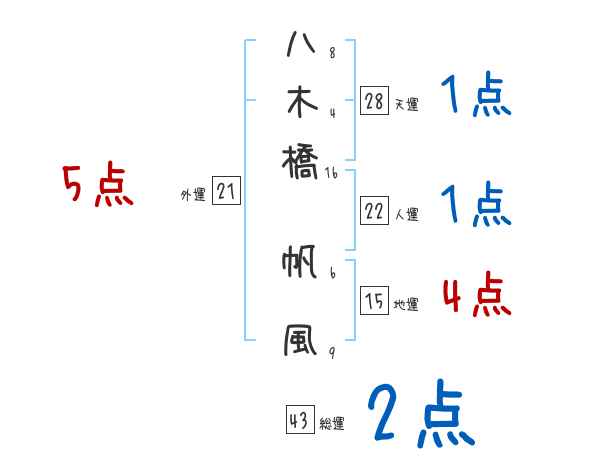 八木橋帆風さんの画数の鑑定結果