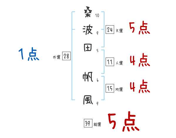 桑波田帆風さんの画数の鑑定結果