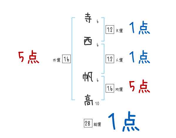 寺西帆高さんの画数の鑑定結果