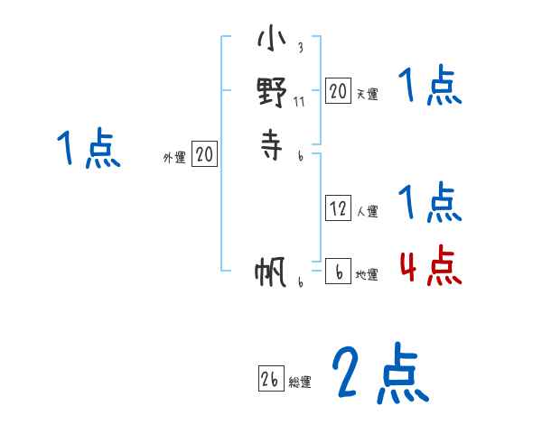 総運![]() | 小野寺帆さんの総運は26画の2つ星!波瀾万丈かも。信頼できる人を大事にしましょう。 あなたの人生を表す1番重要な運勢です。生涯を通じて影響する総合運となり、主に50歳以降の晩年期に影響を及ぼします。 |
