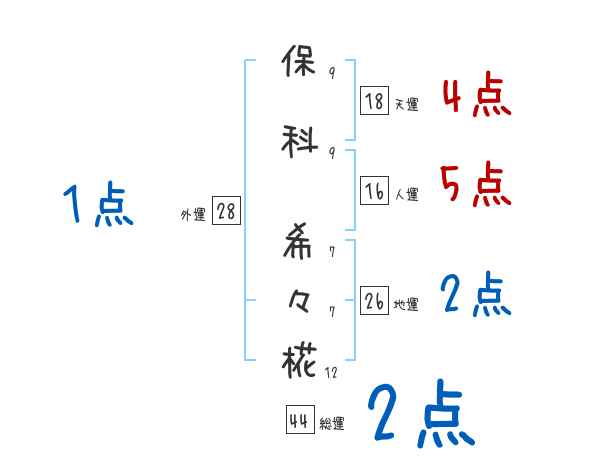 保科希々椛さんの画数の鑑定結果